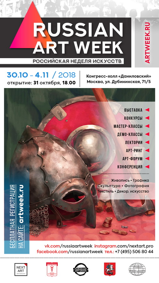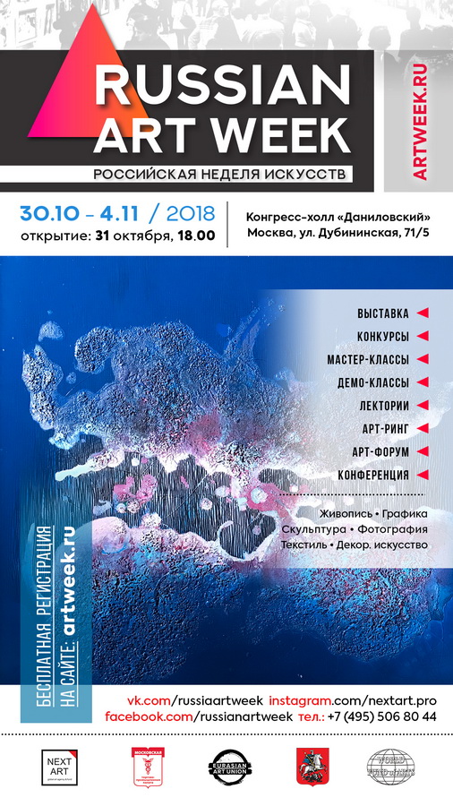 2) получить бесплатно - в этом случае необходимо предоставить информацию о публикации информации о Российской Неделе Искусств в своем аккаунте Facebook, VKontakte, Instagram c хештегом #RAW и после этого заполнить форму, размещенную ниже). Если пришлете фотографию вашего произведения на Этот адрес электронной почты защищён от спам-ботов. У вас должен быть включен JavaScript для просмотра. , мы сможем сделать персональный баннер с вашей работой.